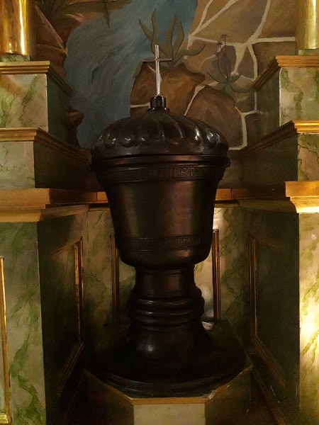 ze starej świątyni manierystyczny portal z XVII wieku. W nowym kościele umieszczono także inny cenny zabytek, czyli chrzcielnicę renesansową z brązu pochodzącą z XVI wieku.